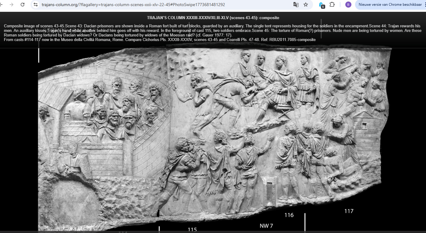 We weten uit talloze bronnen dat de legioenen er behoorlijk wat krijgsgevangenen op nahielden. Maar liefst 50.000 werden er bij 1 enkele slag in onze streek gevangen genomen en slaven waren toen gewoon handelswaar. Die gevangenen moet je ergens bewaren. Op de zuil van Trajanus zien wij dat deze in de legerplaats werden bewaard: