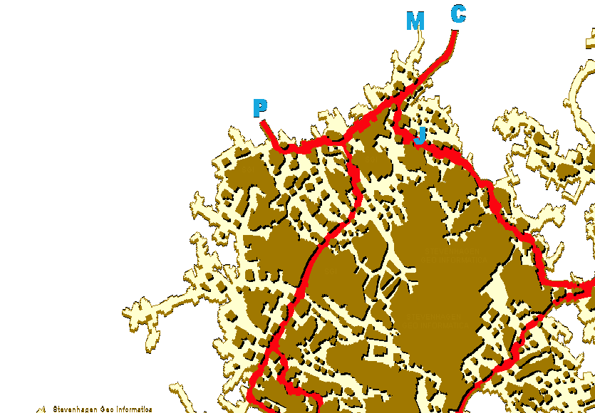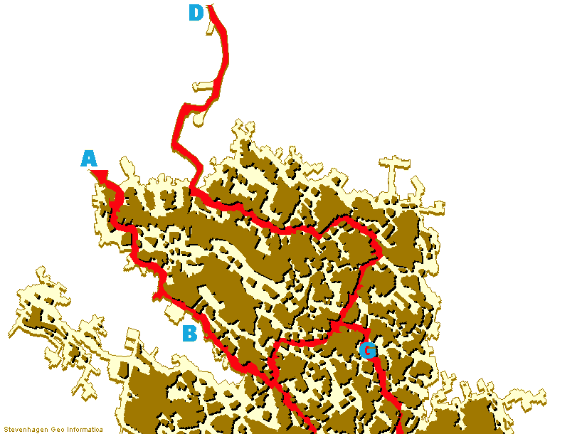 (G) en de E-weg(H).