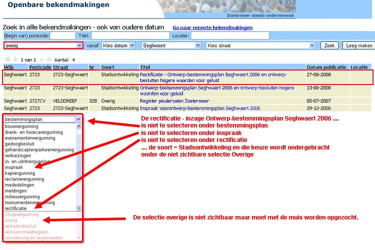 Alleen de fictieve straat "2723-Seghwaert" leidt tot de bekendmaking.